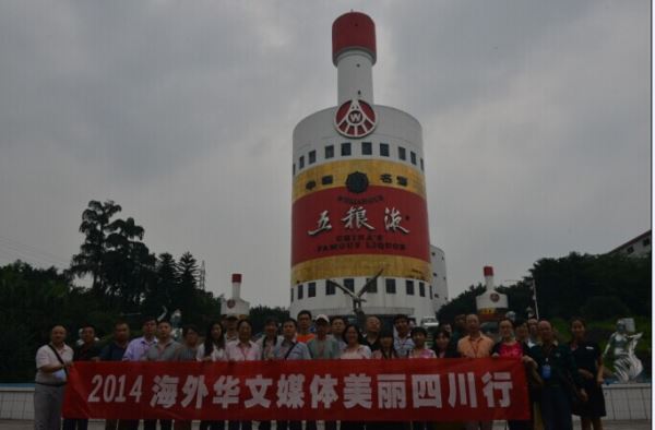 “行走中国-海外华文媒体美丽四川行”在宜宾五粮液合影 胡敏摄影