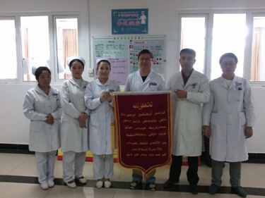 77岁维族大娘因患结石性胆囊炎,胆总管多发结石伴急性胆管炎,前一晚胆绞痛再次发作,2014年10月26日星期日中午送克州医院,张国强医师带领普外科同仁发扬奉献精神,顾不上午饭,中午做急诊手术,顺利挽救了病情,赢得病人和家属的好评,他们送上了锦旗,表达他们朴实的感激之情。