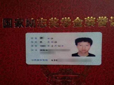 媒体称受害人谢某曾在大学时获得国家励志奖学金。
