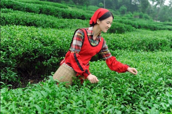 中国早茶之乡的采茶女成了春天里一道亮丽的风景线(宜宣提供)