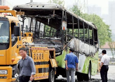 "当时火势特别快、特别猛,很多乘客的包和随身物品都没带下来。"胡先生说,不到5分钟,全车就被大火覆盖,他在车下看到,纵火嫌疑人被附近执勤的公安人员从车上拉下来,此时男子向车旁边的石礅上撞去,企图自杀,但被执法人员和市民制止了。下车时纵火嫌疑人手里还攥着点火用的打火机,也被执法人员一把抢下。