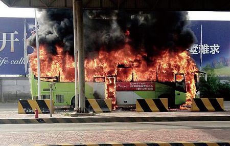 现场公交车突然起火距加油站仅50米
