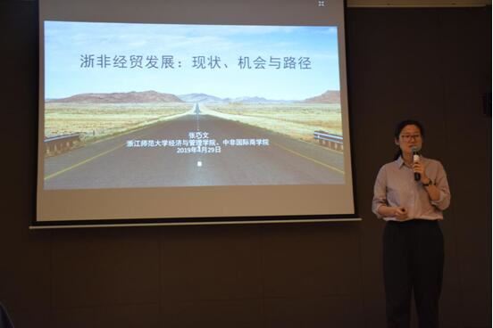 浙江师范大学教育部中国南非人文交流中心秘书长张巧文博士作非洲投资环境介绍。