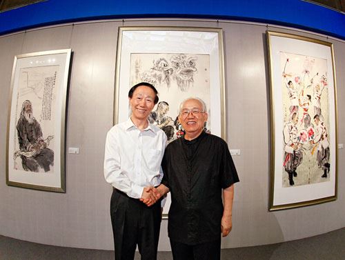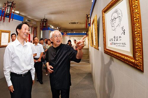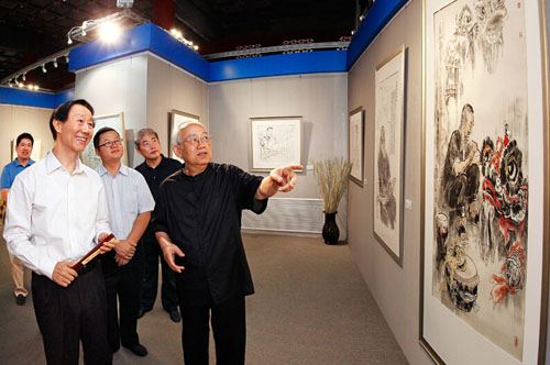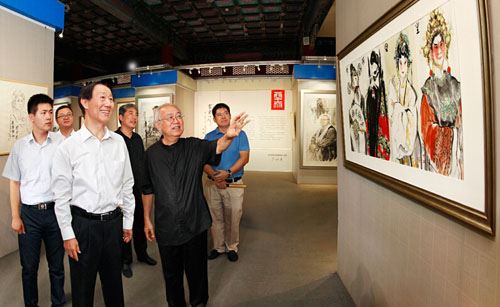 7月9日,全国政协副主席、中共中央对外联络部部长王家瑞来到恭王府,在全国政协委员、中国国家画院国画院艺委会主任、著名画家李延声,文化部恭王府管理中心主任孙旭光等领导的陪同下参观了“家园心声――李延声非物质文化遗产画展”。