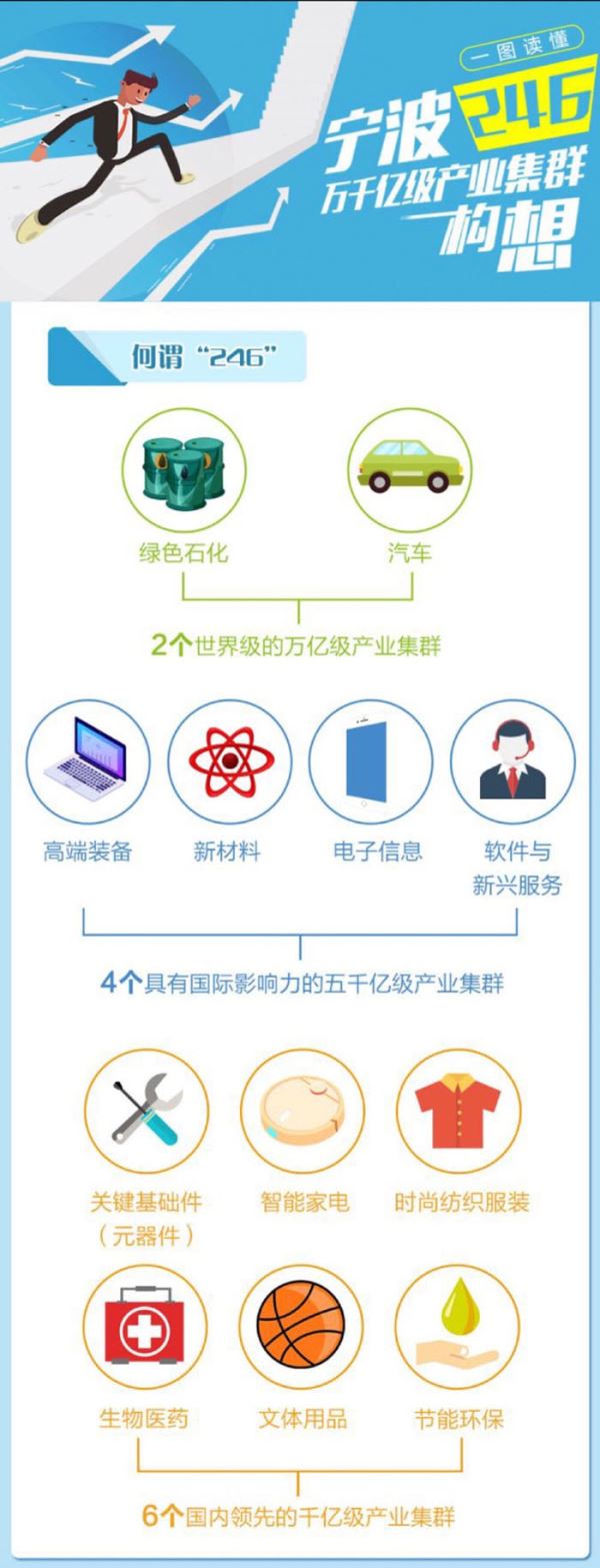 立足宁波制造业发展实际,围绕高质量发展目标,宁波提出,力争到2025年,在全市培育形成绿色石化、汽车2个世界级的万亿级产业集群,高端装备、新材料、电子信息、软件与新兴服务4个具有国际影响力的五千亿级产业集群,关键基础件(元器件)、智能家电、时尚纺织服装、生物医药、文体用品、节能环保6个国内领先的千亿级产业集群。通过“246”的打造,掌握一批重点领域关键核心技术,涌现一批世界级领军企业、单项冠军企业和知名品牌,建成功能布局合理、主导产业明晰、资源要素集聚、产城深度融合、特色错位发展的产业集群平台体系,构建形成适应产业集群发展的制度体系和政策体系。