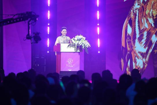 盛典开场首先由王昱文主席致欢迎词,她在欢迎并感恩之后说道:“中华文化是中华民族的灵魂,是中华民族生生不息的力量源泉;中华文化产业则是新时代中华民族兴盛的第一推动力,是复兴中华文化的唯一途径,是实现美丽中国梦的重要支柱......千吉国际集团全球品牌管理有限公司创立于2018年初,在中华新时代、国际新形势、市场新格局的关键之年应运而生,道一德诚,千吉万福”,让我们存匠心、制匠品、做匠人,投入到‘关爱女性,女神在行动’等公益慈善的活动中,用孝心、爱心和真心共同打造一个‘凝聚爱心、分享智慧、共享幸福’的文化产业大平台!”热情洋溢的致词引爆了全场掌声。“中国梦,千吉梦,我的梦!”王主席以这句饱含家国情怀和社会责任感的话结束了致词,顿时掌声雷动。