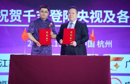 分别与央视卫视媒体签约代表娄元强娄总;