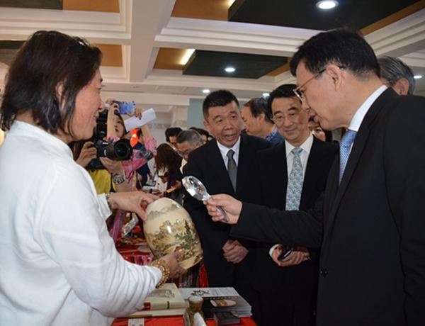 6月9日,出席“魅力中国—广东文化周”的嘉宾在活动现场观展。(图片由首尔中国文化中心提供)
