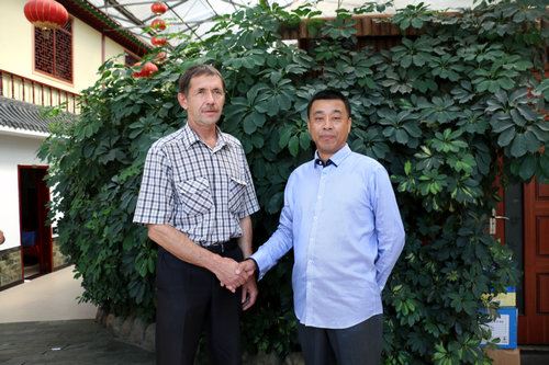 白俄罗斯文化联盟副主席巴巴克和慈善企业家单玉志在河北固安亲切交流