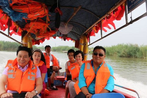 文化交流期间,董铁棍陪同中白友好人士参观白洋淀《小兵张嘎》红色基地