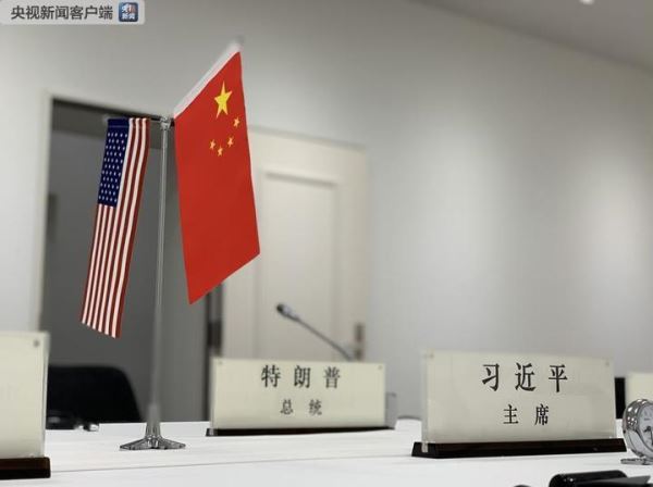△这是当天会晤时习近平和特朗普的中文桌签。(央视记者邓睿拍摄)