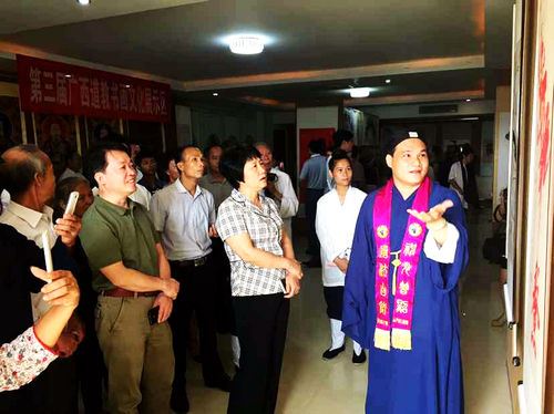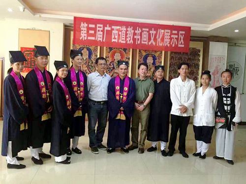 参加“第三届广西道教书画展”的有关领导及嘉宾有:桂平市政协主席吴燕;桂平市政协副主席陈雪峰、桂平市文化体育和广播电视局局长陈兆仁、桂平市文联主席梁炳荣、桂平市民族宗教局长谢晔华、桂平市委宣传部副部长覃鸿全、桂平市民宗局副局长伍燕燕;原广西区文联办潘荣生、中共南宁市江南区委常委、统战部长李海波;副部长莫明星、江南区民宗局长陈军;广西道教协会副会长、贵港市(桂平)道教协会会长、白石山三清观住持-陈应伟道长;贵港市(桂平)道教协会副会长陈应福、李德钦、侯文波;市书协主席杨亚友、美协主席韦照明等。