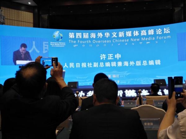 人民日报社副总编辑兼海外版总编辑许正中代表主办方致辞,许正中表示,人民日报海外版将继续加强与全球华文媒体的协作联动,加快建立全球华文新媒体数据服务平台、内容共享平台、定制推送平台、培训交流平台,与海外华文媒体实现更紧密的资源共享、内容共享、技术共享、用户共享,在国际舆论场上把中国声音传得更广、更远。