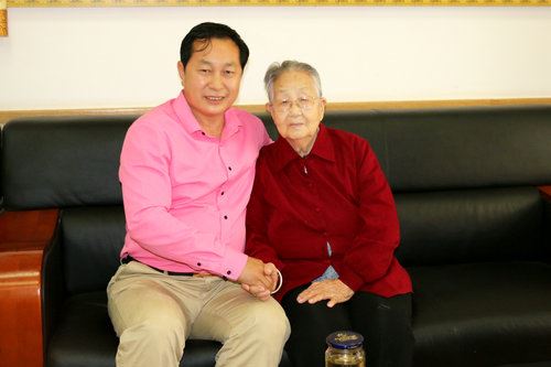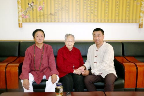 王立坤,1917年8月24日出生,是我国著名国画大师娄师白的夫人,毕业于南开大学,1952年嫁到娄家,陪伴娄师白先生携手走过58载春秋,也见证了娄老艺术生涯的辉煌与成就。现如今已经97岁高龄的王立坤虽然行走不便,但看到娄老的得意门生张少石一行在节日期间来看望她,依然要求保姆搀扶她站起来向大家问候并表示谢意。