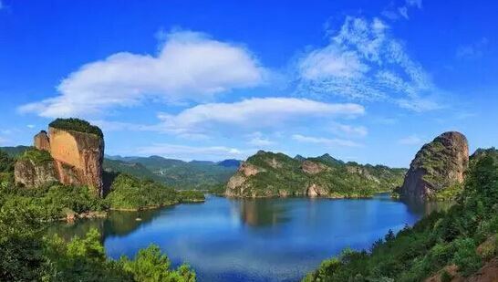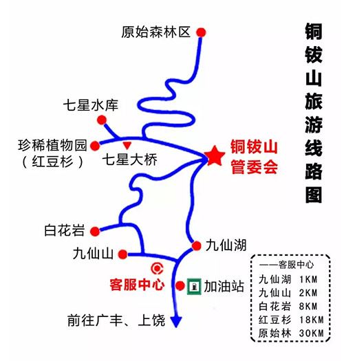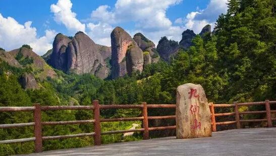 人文底蕴深厚,孕育了张叔夜等历史名人,产生了一尊肉身佛,唐代古刹白花岩、茶马古道和壁画保存完好。有省级重点保护文物――九仙山农民起义军古城堡,北宋著名爱国将领张叔夜故里,唐代建立的江南佛教胜地广福寺、悟道峰马氏夫人庙等。还有广丰第一个县苏维埃政府旧址,红军医院、兵工厂等。是原中央苏区范围,红军岩21名勇士跳崖壮举比狼牙山五壮士早十年。朱熹、徐霞客、明代状元孙继皋等游历后留下了优美诗篇。是铜钹山四大高峡湖之一,这里水光潋滟、碧波粼粼、山水辉映、风光秀丽,是铜钹山的迎客湖,更是一幅古典的山水画卷,被誉为“江南天池”,是一处生态休闲度假胜地。 九仙湖湖面3000亩,平均水深36米,湖内岛屿星罗棋布,姿态各异,聚散有致,各种丹霞象形石栩栩如生、呼之欲出。主要景点有龟寿峰、龟蟒相亲、文武双圣、笔架山、神仙打鼓、莲花岛、“百老坡”摩崖石刻、红军岩等。这里山青水秀,奇峰林立,风光旖旎,空气清新甘美,生态环境极佳,建有666米江南最长的滑索。坐船穿行于湖面,只见蓝天白云映衬着青山绿树,湖旁的奇峰怪石绿树繁花与湛蓝水面组成一幅优美画卷,让人心旷神怡。是全国丹霞面积最大的森林公园,而九仙山是铜钹山丹霞地貌的精华部分之一,海拔571米;其山势险峻,三面悬崖峭壁,仅北面有小道可登。九仙山是明末清初农民起义军山寨遗址,首领名叫杨文,他曾在这群峰攒集之地聚集了9300人,打出反清复明的旗号,坚持斗争长达7年。起义军仿照水泊梁山,建营寨、囤粮草、修栈道、筑城堡,聚义厅上称兄道弟,攻打官军神出鬼没。 站在九仙山观景台,方圆二十多平方公里的丹霞石林,怪石林立、奇峰突兀。老人抱琵琶、北京猿人头、仙姑开怀、卧虎藏威、八仙下棋、杯石、梳头峰等群峰竞秀,惟妙惟肖。九仙山城堡,是江西省唯一一处保护较好的农民起义军古城堡遗址。如今,聚义厅的墙基还依稀可见;东门、南门、西门、北门四座城墙墙基犹存,当年义军开凿的栈道、旗杆洞、安装护栏的石窠,还历历可见。是6千多万年前的造山运动形成的,号称“东南第一峰”,有着“一眼望三省”的特殊地理位置,岩体高大,危峻高耸,远望如大瓮斜立,又似吐蕊花瓣,岩穴面积2500平方米,岩高64米。登高顶峰,视野开阔,方圆60多平方公里丹霞石海、深幽峡谷可以尽收眼底,珠圆玉润的石峰将清秀和阳刚自然揉合。