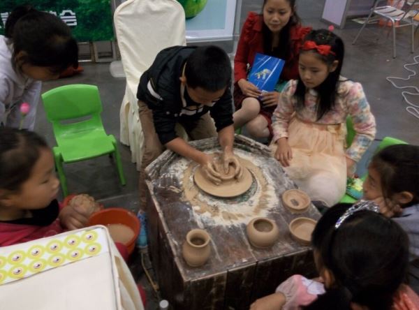 孩子们学习邛崃本土的国家级非物质文化遗产邛窑陶艺