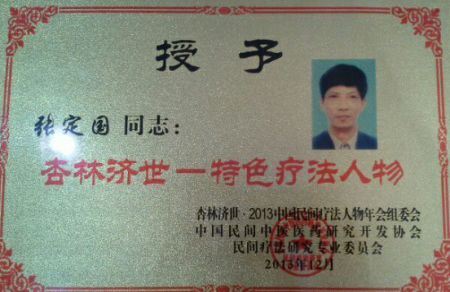 张定国先生,福建厦门人,1970年从部队退役后,继承祖传秘方,一直从事骨伤病及呼吸道疾病的治疗研究。在几十年的工作实践中,不断改进秘方,以达到最好的治疗效果,也收获了广大患者的一致好评。1999年成为中华中医药学会会员。