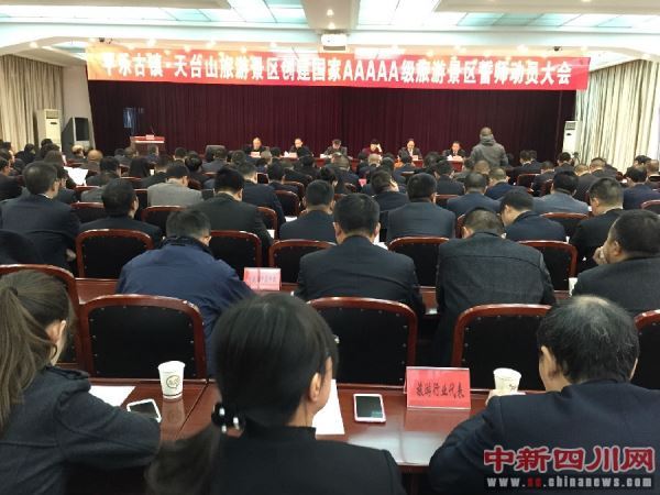 中新四川网12月1日电(汤雁)1日,围绕打造国际休闲度假旅游目的地发展目标,邛崃市隆重举行平乐古镇.天台山旅游景区创建国家5A级旅游景区誓师动员大会,对该市创建国家5A级旅游景区工作进行动员和部署。成都市副市长傅勇林出席会议并作重要讲话;省、市旅游局领导亲临现场指导创建工作;邛崃市级各部门、各镇乡、各景区、涉旅企业和群众代表共约300人参加了当天的誓师大会。