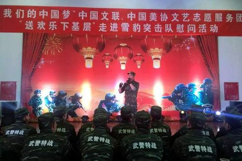 中国产业经济信息网(记者:许顺喜)报道,2016年1月13日,由中国文联、中国美协文艺志愿服务团组织“送欢乐 下基层”走进雪豹突击队慰问活动在中国武警特战总队顺利举行。我国著名军旅歌唱家金波应邀出席本次慰问活动。