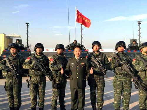 金波慰问演出时应邀和雪豹突击队队员合影