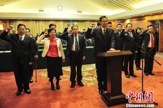 何忠友、蓝佛安等新任命的广东省政府、省人大及其常委会的部分国家工作人员,集体向宪法宣誓。 陈骥F 摄