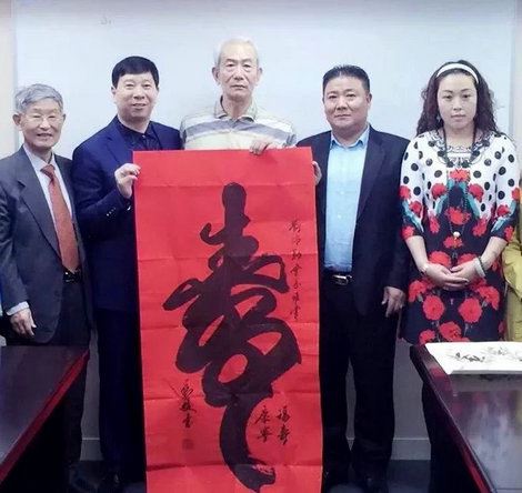 刘沛勋主席收藏刘俊书法作品并与陈谋等人合影留念