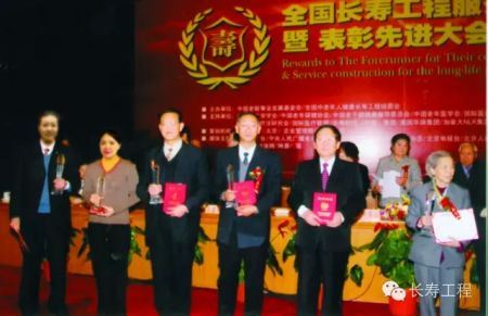 在人民大会堂全国长寿工程建设及表彰大会顾秀莲、彭云、杨汝岱、孟连昆、李宝库、赵宝华等领导颁奖。洪昭光、翁维健、王忠、武留信、陈静、李李等64位专家及150位全国长寿工程志愿服务者受到表彰