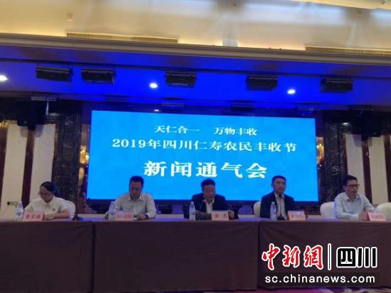中新网四川新闻9月17日电 (汤雁 鲁文俊)记者17日从2019四川仁寿农民丰收节新闻通气会获悉,今年9月23日农历秋分,将迎来第二个中国农民丰收节。四川省眉山市仁寿县将作为“2019年中国农民丰收节”全国直播70个分会场之一,在全国亮相展示。本次丰收节,仁寿县将以“天仁合一,万物丰收”为主题举办中国农民丰收节四川仁寿系列活动,展现仁寿天道酬勤、硕果累累的丰收景象。