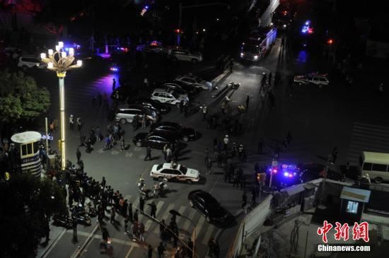 3月1日晚22时许,一伙男子持械冲进昆明火车站广场、售票厅,见人就砍,现场有人员伤亡。目前大批警力已到现场处置,伤员正陆续送往附近医院。中新社发 刘冉阳 摄