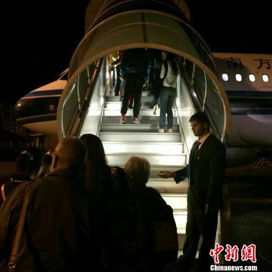 27日凌晨 加德满都机场 CZ3012加班搭载着120名旅客返回广州 富泳钧 摄