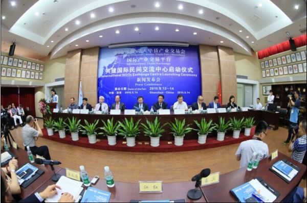 中国(深圳)华人华侨产业交易会、国际产业交易平台、共建国际民间交流中心启动仪式新闻发布会现场。